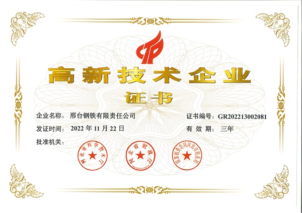 - 邢鋼榮獲“2022年度河北省冶金行業(yè)質(zhì)量管理活動優(yōu)秀組織獎”