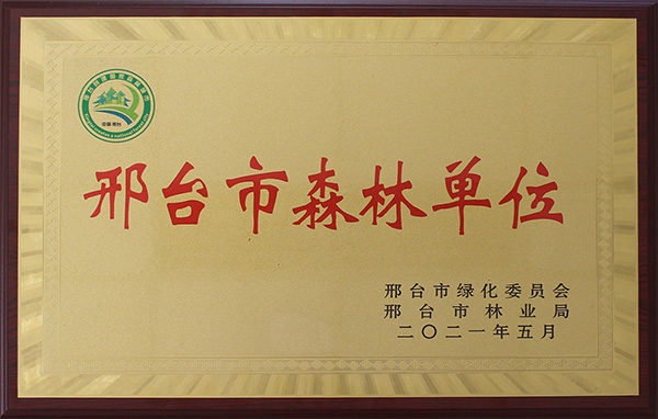 2021年5月,邢鋼獲得由邢臺(tái)市綠化委員會(huì)、邢臺(tái)市林業(yè)局頒發(fā)的“邢臺(tái)市森林單位”稱號(hào)。