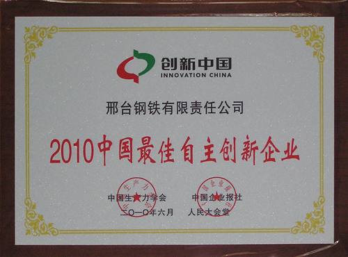 - 邢鋼榮獲“2010中國最佳自主創(chuàng)新企業(yè)”稱號