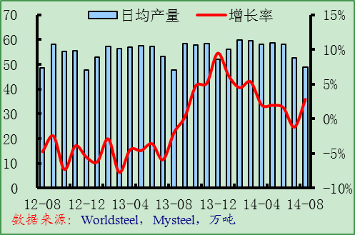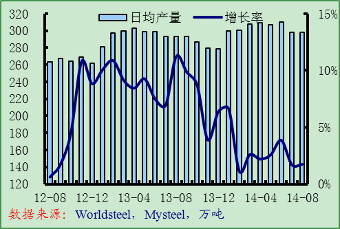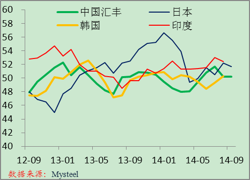 8月份亞洲粗鋼日均產(chǎn)量達到298.4噸,環(huán)比增長0.1%,同比增長1.7%,韓國和印度產(chǎn)量增長明顯。根據(jù)中鋼協(xié)的統(tǒng)計,9月份中國重點鋼企粗鋼日均產(chǎn)量環(huán)比小幅下降,而Mysteel調查的9月份全國鋼鐵PMI產(chǎn)出指數(shù)也有所下降。預計9月份亞洲粗鋼日均產(chǎn)量將環(huán)比下降。