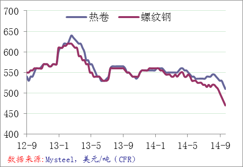 10月份亞洲市場將在底部盤整運行。從需求角度看,主要國家經(jīng)濟增長速度均放緩,10月份市場需求不容樂觀。供應方面,目前中國鋼廠還有一定利潤,減產(chǎn)的積極性也不高,10月份產(chǎn)量仍將保持高位。從成本角度看,雖然鐵礦石和焦煤價格已經(jīng)基本觸底,但反彈時機并未到來。因此,整體上判斷,10月份亞洲市場將在底部盤整運行。