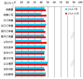蘭格鋼鐵信息研究中心統(tǒng)計(jì)發(fā)布2014年10月鋼鐵流通業(yè)PMI總指數(shù)為47.8,環(huán)比微升0.6個(gè)百分點(diǎn)(見圖1),顯示鋼鐵流通市場(chǎng)活躍度略有好轉(zhuǎn)。從各項(xiàng)分指數(shù)看,10月份鋼鋼鐵流通業(yè)PMI調(diào)查的10項(xiàng)分指數(shù)5升5降。其中,企業(yè)銷量增加,下游訂單增加,但企業(yè)對(duì)后市較為謹(jǐn)慎,采購(gòu)意愿未增(見圖2)??傮w判斷11月鋼鐵流通市場(chǎng)需求景氣微升。