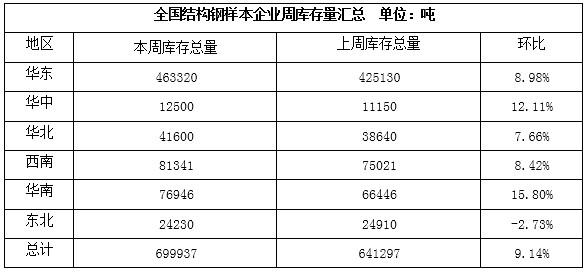 5、華北市場:節(jié)日期間華北市場結(jié)構(gòu)鋼價格大體穩(wěn)定,成交差,現(xiàn)45#碳結(jié)鋼鋼廠直發(fā)主流報價:山東魯麗3870-3900元/噸、榮鋼4030元/噸、宣鋼4050元/噸、凌鋼4060-4080元/噸。據(jù)市場方面消息,節(jié)日期間華北地區(qū)結(jié)構(gòu)鋼市場銷貨不佳,庫存大幅積壓,價格反彈壓力較大,節(jié)后下游需求變化仍有待觀察,商家情緒偏空。據(jù)統(tǒng)計,節(jié)中華北地區(qū)結(jié)構(gòu)鋼市場標(biāo)本企業(yè)庫存累計2.32萬噸,較節(jié)前增加0.3萬噸,環(huán)比增加14.85%。