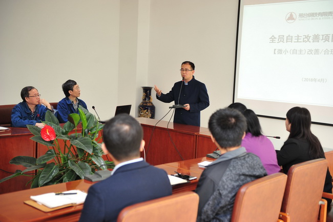 公司全員自主改善精益項目顧問楊智公司聶昌浩作了輔導講話和業(yè)務培訓。重點指出了邢鋼做好全員自主改善項目的重要意義;強調(diào)自主改善工作要不斷優(yōu)化,長期堅持;各級管理者要正確引導,把無序的工作變?yōu)橛行虻母纳疲桓骷壴u審委員會在做好評審工作的基礎上,要重點做好改善方向的引導。