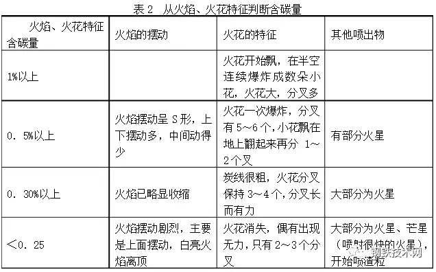 對于火花的研究,1804年起英國的門生?塔斯克斯(Manson Tacpues)、1929年給特(T.D.Gat)及日本“火花檢查法研究委員會”都曾從鋼品種檢查的角度系統(tǒng)研究了如何根據(jù)砂輪上磨出來的火花特征去鑒定鋼的品種。對于在煉鋼過程中如何用視覺掌握火花的方法的研究是極其貧乏的??椿鸹〞r感知的對象是運動物體,即火花。要看它分叉的數(shù)量,分叉是一種形狀變化?;鸹ǚ植嬷噪y以看到的原因是由其本身及四周的一些因素決定的,如爐口噴出來的碳花體積很小,很密,流動速度很快,同時白色碳花又在白亮火焰的背景上,因此很難識別碳花,而碳花分叉更難辨別,因為碳花從爐口噴出后只在半空中開始分叉,而且分叉的時間極短促,所以要想觀察到碳花的分叉,就需要用視覺追蹤,把碳花作為一個運動物體的運動軌跡。此外要掌握碳花運動速度,因為碳花在分叉以前要降低速度,在半空停留一下隨后分叉,所以還要掌握碳花在空中分叉的位置。碳花在半空停留時就注意觀察才能看到碳花分叉的數(shù)目。掌握碳花運動的規(guī)律,由時間空間定位來觀察碳花分叉情況,在實踐中證明了是個好方法。在剛開始學習看碳花時,由于碳花很密,可以先從碳花最稀的地方選擇地找一個來觀察,這樣容易觀察到它的特征,這就是選擇性的部分觀察,學會部分觀察后才可進行全部觀察。有的煉鋼工沒有掌握這一認識活動的規(guī)律,就始終不能看到碳花的分叉,目前在煉鋼工中不能判斷碳花的不乏其人。