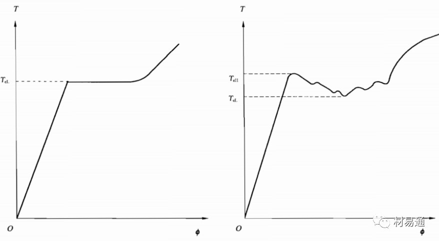 首次下降前的最大扭矩為上屈服扭矩,屈服階段中不計初始瞬間效應(yīng)的最小扭矩為下屈服扭矩。