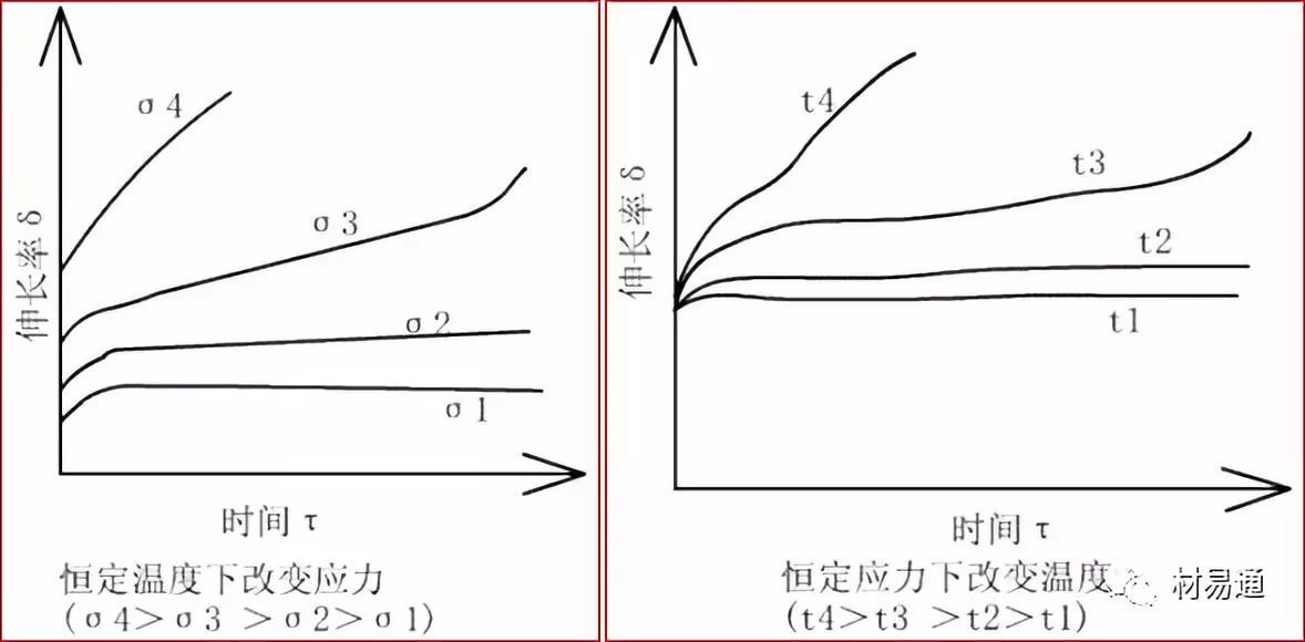應(yīng)力、溫度不同的蠕變曲線變化圖