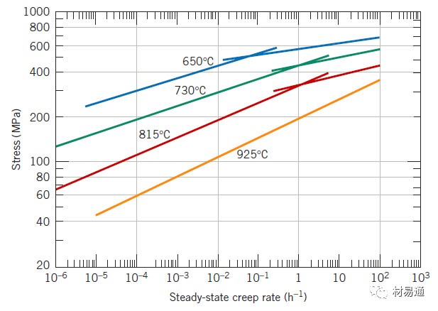 同一溫度下,蠕變第二階段應(yīng)力σ與穩(wěn)態(tài)蠕變速率ε之間,在雙對數(shù)坐標(biāo)中呈線性經(jīng)驗關(guān)系。