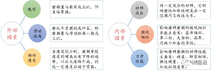 磨損按磨損機理可分為粘著磨損、磨粒磨損、疲勞磨損、腐蝕磨損、沖蝕磨損、微動磨損,按環(huán)境介質可分為干磨損、濕磨損、流體磨損。