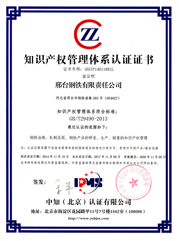 As the first batch of national intellectual property advantage enterprises announced by the State Intellectual Property Office, Xingtai Steel has always been promoting technological innovation based on the research concept of “accurate recognition, strict definition, fine analysis and precise improvement”. Now, Xingtal Steel could produce 3347 products which belong to 629 types of steel. Besides, 156 patents in force, including 50 patents for invention are obtained.