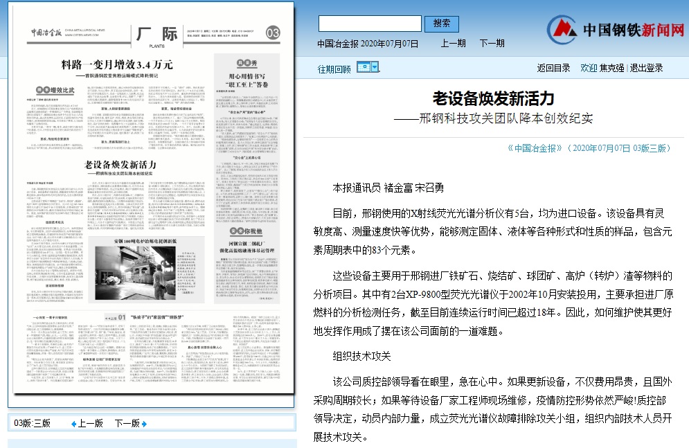 目前,邢鋼使用的X射線熒光光譜分析儀有5臺(tái),均為進(jìn)口設(shè)備。該設(shè)備具有靈敏度高、測量速度快等優(yōu)勢,能夠測定固體、液體等各種形式和性質(zhì)的樣品,包含元素周期表中的83個(gè)元素。