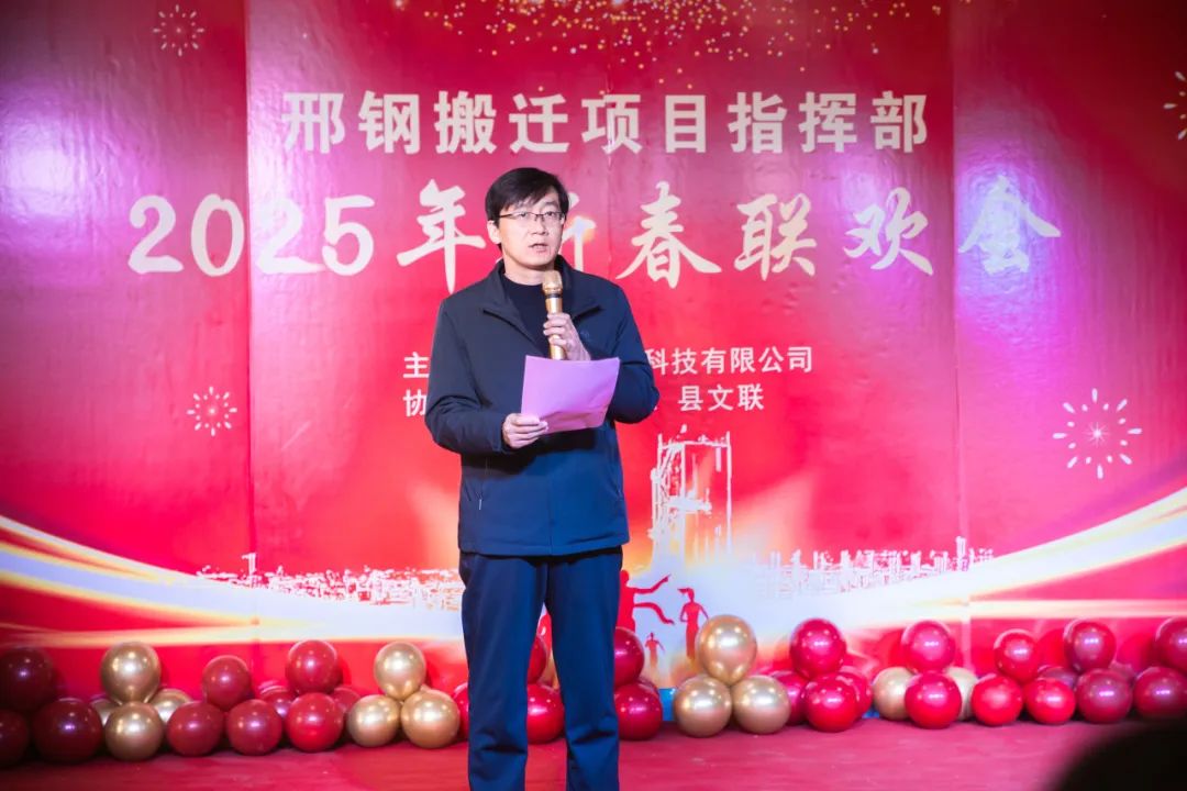 2025年1月18日下午4時,邢鋼搬遷項目指揮部食堂區(qū)域張燈結(jié)彩,氣氛熱烈。邢鋼公司、縣委縣政府及政府部門、縣搬辦及五冶等施工單位、邢鋼參建職工代表、邢鋼公司先進(jìn)項目部及先進(jìn)個人等歡聚一堂,齊心聚力再加油,迎接新的機(jī)遇與挑戰(zhàn),將在公司高質(zhì)量發(fā)展新征程上再譜新篇。