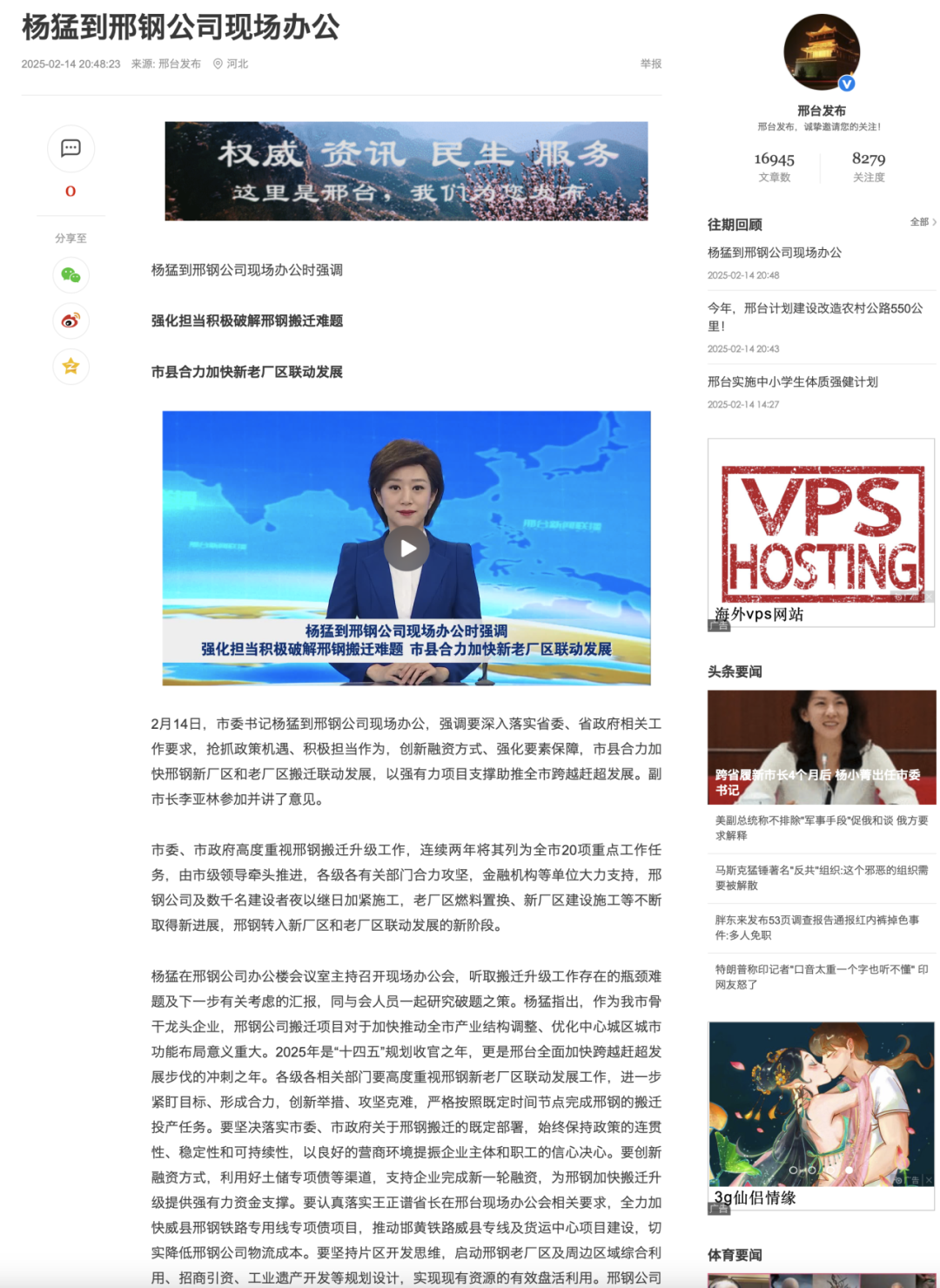 楊猛在邢鋼公司辦公樓會(huì)議室主持召開(kāi)現(xiàn)場(chǎng)辦公會(huì),聽(tīng)取搬遷升級(jí)工作存在的瓶頸難題及下一步有關(guān)考慮的匯報(bào),同與會(huì)人員一起研究破題之策。楊猛指出,作為我市骨干龍頭企業(yè),邢鋼公司搬遷項(xiàng)目對(duì)于加快推動(dòng)全市產(chǎn)業(yè)結(jié)構(gòu)調(diào)整、優(yōu)化中心城區(qū)城市功能布局意義重大。2025年是“十四五”規(guī)劃收官之年,更是邢臺(tái)全面加快跨越趕超發(fā)展步伐的沖刺之年。各級(jí)各相關(guān)部門(mén)要高度重視邢鋼新老廠區(qū)聯(lián)動(dòng)發(fā)展工作,進(jìn)一步緊盯目標(biāo)、形成合力,創(chuàng)新舉措、攻堅(jiān)克難,嚴(yán)格按照既定時(shí)間節(jié)點(diǎn)完成邢鋼的搬遷投產(chǎn)任務(wù)。要堅(jiān)決落實(shí)市委、市政府關(guān)于邢鋼搬遷的既定部署,始終保持政策的連貫性、穩(wěn)定性和可持續(xù)性,以良好的營(yíng)商環(huán)境提振企業(yè)主體和職工的信心決心。要?jiǎng)?chuàng)新融資方式,利用好土儲(chǔ)專(zhuān)項(xiàng)債等渠道,支持企業(yè)完成新一輪融資,為邢鋼加快搬遷升級(jí)提供強(qiáng)有力資金支撐。要認(rèn)真落實(shí)王正譜省長(zhǎng)在邢臺(tái)現(xiàn)場(chǎng)辦公會(huì)相關(guān)要求,全力加快威縣邢鋼鐵路專(zhuān)用線專(zhuān)項(xiàng)債項(xiàng)目,推動(dòng)邯黃鐵路威縣專(zhuān)線及貨運(yùn)中心項(xiàng)目建設(shè),切實(shí)降低邢鋼公司物流成本。要堅(jiān)持片區(qū)開(kāi)發(fā)思維,啟動(dòng)邢鋼老廠區(qū)及周邊區(qū)域綜合利用、招商引資、工業(yè)遺產(chǎn)開(kāi)發(fā)等規(guī)劃設(shè)計(jì),實(shí)現(xiàn)現(xiàn)有資源的有效盤(pán)活利用。邢鋼公司要堅(jiān)定信心,千方百計(jì)推進(jìn)搬遷升級(jí)項(xiàng)目早投產(chǎn)、早見(jiàn)效,在項(xiàng)目建設(shè)中當(dāng)先鋒、挑大梁,為投資消費(fèi)質(zhì)效年貢獻(xiàn)力量。