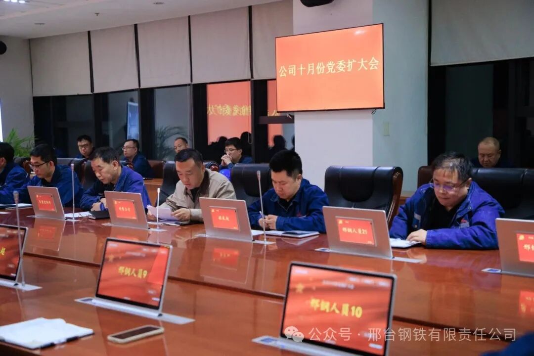 On October 30, the Company's Party Committee convened the October Enlarged Party Committee Meeting in Conference Room 207 of the company office building. Senior leaders of the company including Tian Xinzhong, Wei Ligang and Li Hongchao, as well as all middle-level managers and professional staff at the director and deputy director levels attended the meeting. Relevant personnel stationed at the new factory in Weixian County participated via the video conference system.